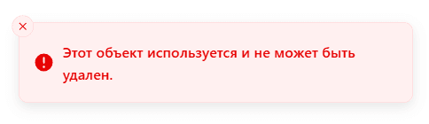 Если категория используется в системе, удаление не возможно, и система уведомит об этом: