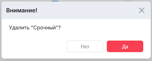 Если приоритет используется в системе, удаление не возможно, и система уведомит об этом: