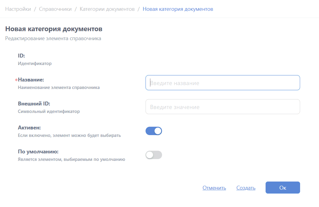 - По умолчанию - установите, если категория должна автоматически назначаться новым документам.